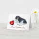 A French Brittany spaniel holds a red heart on this sweet Valentine's Day card.