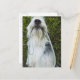 Dog with leash in mouth postcard