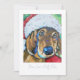 Painting of an adorable hound dog wearing a Santa Hat featured on a holiday note card with the inscription "Peace, Love & Belly Rubs"