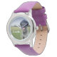 The watch looks exactly as depicted. I was especially pleased with the watch band, which is a nice quality, supple leather. I point this out because an option, which was sold out, was with a multi-colored but clearly plastic band. This is the better choice, in my view.
