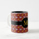 Customisable two-tone mug with blue and yellow dogs pattern on dark red background + black round tag for Monogram in front. You can easily change monogram and add text (font,colour, size and position) by clicking the customise button. Matching pitcher, cloth napkin, placemat and a lot of other products... Perfect for Chinese New Year of the Dog 2018 or birthday (people born in Dog year).