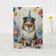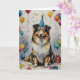 A cheerful watercolor illustration of a happy dog wearing a festive party hat, surrounded by colourful balloons, confetti, and wrapped presents. With its joyful expression and playful background, this charming design captures the fun and excitement of a birthday celebration—perfect for dog lovers!