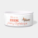 I absolutely love this product! I was a little concerned prior to buying it, but I was blown away by the quality of the item. The bowl is sturdy and arrived clean without any damage. The printing was crisp and clean and looks Better than I hoped! My dogs immediately knew these were for them and get very excited to pose with their new bowls! Definitely recommend and will purchase more in the future! The printing is crisp and well done. It looks absolutely beautiful on the bowl, and I can tell that it’s going to hold up well over time.