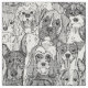 Originally drawn in ink, illustrated dogs including spaniels, dalmatian, boxer and mixed breeds ~ black, white, monochrome ~ Basic repeating pattern file for fabric, feel free to adjust scale as required.