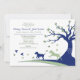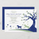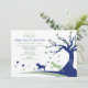 This design puts a new spin on the traditional “lovebirds in a tree” concept. Meant for the couple who loves their pets, two dogs chase the lovebirds from the tree. The dogs represent the couple stirring up and enjoying life. The tree has a twisted trunk and limbs like the tree of life, and the leaves are shaped like hearts. Customise the text in the top left corner. Love is in the air for any animal lover in this fun, light-hearted invitation design.
