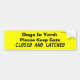 Dogs In Yard: Please Keep Gate, CLOSED AND LATCHED Bumper Sticker