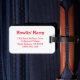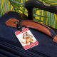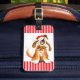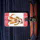 Cute luggage tag ideal for pet dogs in transit this named id tag will assist you to keep your dog identified or a dog owners luggage identified. Personalise with your name and address on the reverse. Useful pet seasonal luggage tag with a howling Christmas dog art. Watercolor singing dog artwork and design by Sarah Trett.