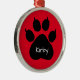 Dog's Name Personalised Paw Print Christmas Metal Metal Ornament