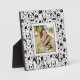 Made to look dimensional, a border of black and white dogs creates a fun frame for your favourite photo on this tabletop plaque with a built-in easel. The image is put directly on the hardboard panel for a stunningly crisp image with an easy wipe clean surface. Great as a gift or to display your favourite photo in your home. TIP: If using square plaque, you might need to crop your photo to a square BEFORE uploading it for best results.