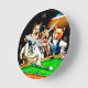 The product is made well. The clock has a plastic mechanism and runs on one AA battery . It matches a tile we ordered for our beach house and is a conversation piece for our guests. The design and printing were well done. The color was deep and full. I was pleased with the clarity.
