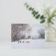 This original little snow scene landscape painting shows two mixed breed dogs, having fun in the fresh carpet of crisp snow. The brown and black dog is accompanied by his friend a german shepherd/ golden labrador cross breed dog, the two of them are gazing across the snow covered landscape to the rooftops below the hill. The two pals have just been playing in the snow covered trees and are taking a little breather from their doggy fun and games. This original picture of two dogs in the snow makes a great original art Christmas postcard. This is a customisable postcard, you can personalise it with your own text. The watercolour snow landscape painting is titled "Fun In The Snow" The scene is of a golf course in South Woodford on the edge of East London England.