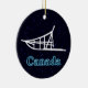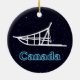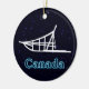 A simple white silhouette of a dog sled on a starry background. Text reading "Canada" appears in glowing blue.