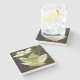 The coasters are gorgeous, a quality feel and heavy weight. They look like a precious archeological find. A rustic stone juxtaposed with a modern floral black and white print. I like the way the print goes slightly imperfect on the cut stone edges giving them a kind-of natural beauty.