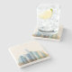 The coasters are gorgeous, a quality feel and heavy weight. They look like a precious archeological find. A rustic stone juxtaposed with a modern floral black and white print. I like the way the print goes slightly imperfect on the cut stone edges giving them a kind-of natural beauty.