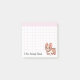 Cute sticky note featuring a sweet cartoon brown french bulldog in the bottom right corner of the note. To the left of the dog are the words "I Am Doing Great" in black font, this is a template so can be changed to any text. The background is white with a pink grid pattern.