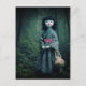 AI generated beautiful Japanese doll walking a mossy forest path wearing her beautiful kimono