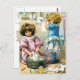 Cute vintage illustration of two little girls, busy washing their doll's clothes in a wooden wash tub and hanging them up on the clothesline to dry. Great team work!