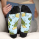 Stuffed grape leaves with rice and herbs. Lemon slices, dill, mint leaves and tzatziki dip. Seamless pattern. Custom background colour. Custom top stripe colour. Custom text on each sock.