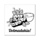 Stuffed grape leaves with rice and herbs. Lemon slices, dill, mint leaves and tzatziki dip. Custom text.