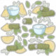 Stuffed grape leaves with rice and herbs. Lemon slices, dill, mint leaves and tzatziki dip. Sticker set.
