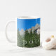 A beautiful view of the Dolomites mountains in Italy printed on a souvenir ceramic mug.