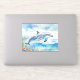 A friendly dolphin that swims and jumps free in nature. Watercolor