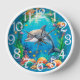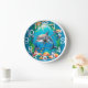An Adorable Large Blue And White Numbered Wall Clock Done With Dolphin In Water