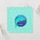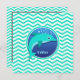 Cool, cute kids ocean, sea life, theme design with cartoon aqua turquoise dolphin on aqua green, turquoise and white chevron stripes pattern.