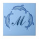 A trio of dolphins jump over the centre monogram in this tile. The centre letter is in a template form and easily changed to your letter.