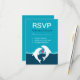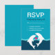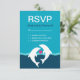 This colourful, modern, blue wedding RSVP card features two playful dolphins in the ocean waves. Perfect for a destination beach wedding by the sea or a cruise ship wedding. Easily personalise with your wedding details.