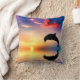 A gorgeous throw pillow containing a picture of a dolphin driving through the water at sunset.