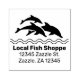 Address stamp for an aquarium supply store or fish shop. Use or replace the dolphin logo.