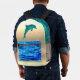 A wonderful dolphin jumping out of the sea in a sun ray. Glitter and metal imitation with sparkles.