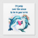 Dolphin valentines greeting card features wedding couple in love with phrase I `ll jump the ocean to be in your arms