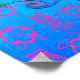 Dolphin jumping through a Maori sun symbol with a blue ocean and sailboat behind it.. Pink Honu turtles and pink tiki masks pattern over a ocean blue background.