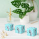 Underwater dolphin favour box with text on top. Thank party guests with a little box full of favours. The tropical sea green water design covers all sides with dolphins swimming all around. Wavy, bold letters on top can say, “thank you” to party guests. Fill with candy, stickers or small toys. Boxes come flat and will need to be folded.