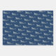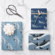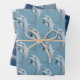 Dolphin wrapping paper, in three designs and colours, printed on three large sheets that come rolled, not folded. Dark blue and blue-grey colours have various types of dolphin swimming. The designs are perfect for any adult birthday celebration, or summer party gift giving.