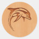 Dolphin silhouette engraved on wood design classic round sticker