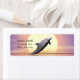 Address label with a dolphin leaping out of the water with a yellow sun in the background.