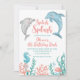 Dolphin and sea life Under the sea Birthday invite with watercolor dolphin, seashells and fish.