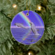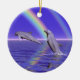 Hanging ornament with my original digital artwork of two dolphins leaping out of the water, chasing a rainbow.