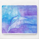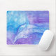 Two dolphins swimming in an abstracted background of blues and purples, based on an original watercolor painting by Julie Akeman (Akemanartist)