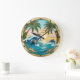 Dolphins Jumping Ocean Waves Sunset Large Clock