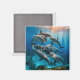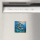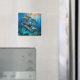 This magnet is shown with a photo art print of dolphins.