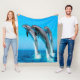 This nautical fleece blanket features 3 dolphins against a blue ocean. It is available in 3 sizes.