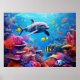 Dolphins on a coral reef, marine life poster