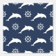 Nautical pattern with silhouettes of dolphins and steering wheels | © and ® Bigstock® - All Rights Reserved.
