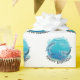 Dolphins on earth with bubbles and Happy Birthday text on a white background.