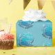 Dolphins on earth with bubbles and Happy Birthday text on a aqua background.
