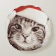 Domestic tabby cat wearing red Christmas hat Round Cushion